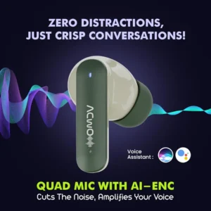 Mivi DuoPods Maxx Hazel Green earbuds with 13mm bass drivers, 50Hrs playtime, AI-ENC HD calls, and Gaming Mode. Wireless, stylish, and perfect for music, calls, and gaming.