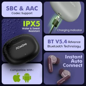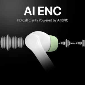 TWS in-ear earbuds with ENC, HD sound, deep bass, low latency gaming mode, Type-C fast charging, and IPX5 sweat resistance.