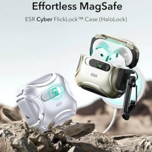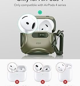 Stylish Army Green Cyber Series Case for AirPods 4 (2024) with MagSafe compatibility, drop-proof lock, and TPU protection. Keeps your earbuds safe, secure, and ready to charge wirelessly — ...
