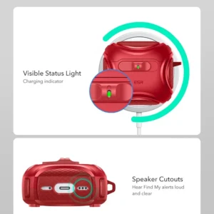 Bold Cyber Series Red Case for AirPods 4 (2024) featuring MagSafe compatibility, hybrid drop protection, secure lock, and an easy-carry strap. Built from durable TPU with a stylish matte ...