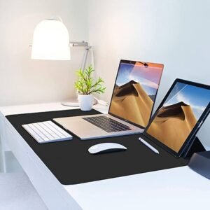 Black and Grey Faux Leather Desk Mat 90x45cm – Reversible Large Mouse Pad
