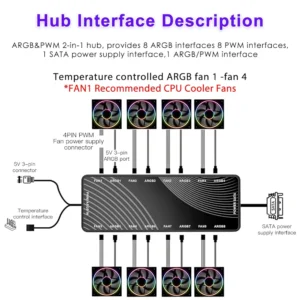 8-Port ARGB & PWM Fan Hub Controller | Dual Power Input (12V 4-Pin & 5V 3-Pin) | Magnetic Backplane Splitter | PCI Express x1 Interface | Standard Size
