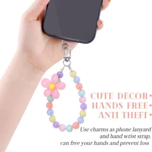 Cute Phone Charm Chain for Girls with vibrant jelly beads and flower charms. Lightweight, durable, and perfect for adding playful style to any phone.