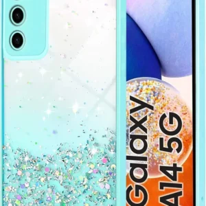 Mint Green Non-Moving Glitter TPU Case for Samsung Galaxy A14 5G – Slim, shockproof, anti-scratch, lightweight, and stylish protection for girls and women.