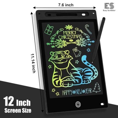 12-inch reusable LCD writing pad with stylus and 2048 pressure sensitivity levels. Safe, portable, and ideal for kids to draw, write, and learn creatively.
