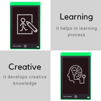 The 12 Inch LCD Writing Tablet for Kids in vibrant green is designed for creative learning and fun. Ideal for writing, drawing, and educational activities, this tablet provides a safe and interactive way for children to explore their imagination.