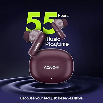 Experience superior sound and comfort with the 121 Wireless In-Ear Earbuds (Deep Plum) featuring 55Hrs playtime, Supreme Bass, Quad Mics with ENC, and 3 EQ Modes. Enjoy fast charging (10M=120M) and Bluetooth v5.4 for instant, seamless connectivity.