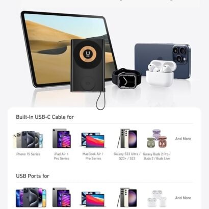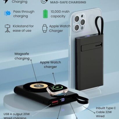 2-in-1 Mag-Safe Power Bank 10000mAh with Apple Watch Charging _ 22.5W Fast Charging _ Charges iPhone 50_ in 30 mins via Built-in Type C Cable_ Magnetic Power Bank for iPhone 12 & Above