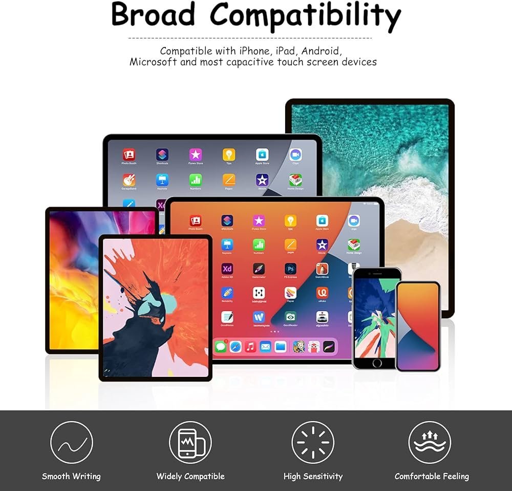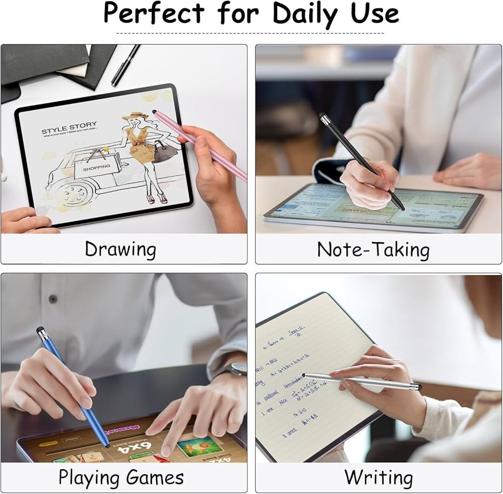 ● 【Anti-Scratch Tips Stylus Pens】The touch screen stylus has the exquisite soft rubber tip, which is suitable for capacitive touch screen, fingerprint resistant and anti-stick screen tip, great for studying, drawing and playing games.
