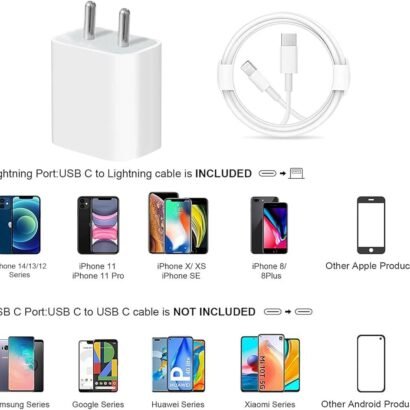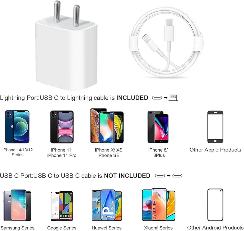 3.0 Original Fast Charger Adapter Compatible with iPhone 14-14 Plus-14 Pro-14 Pro Max, 13-12-11 Series, iPad with 1 Meter Type C to Lightning Data Cable (Adapter+Cable)