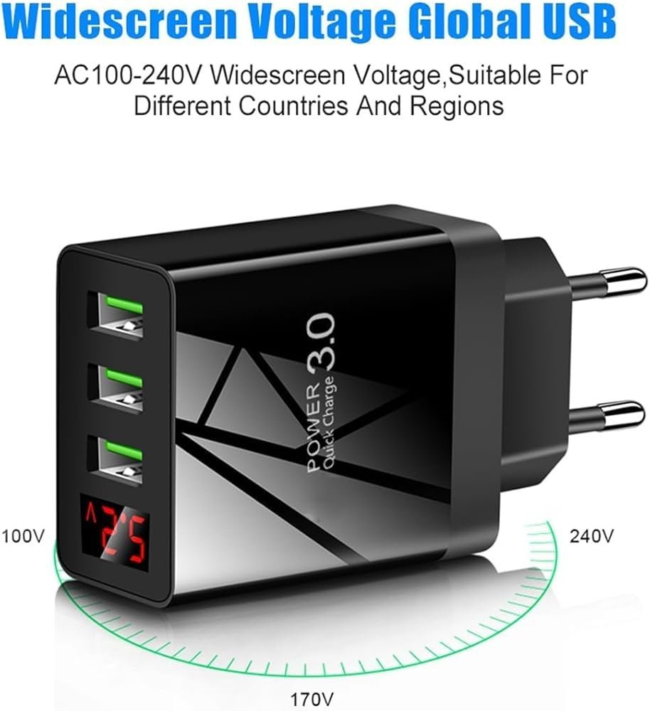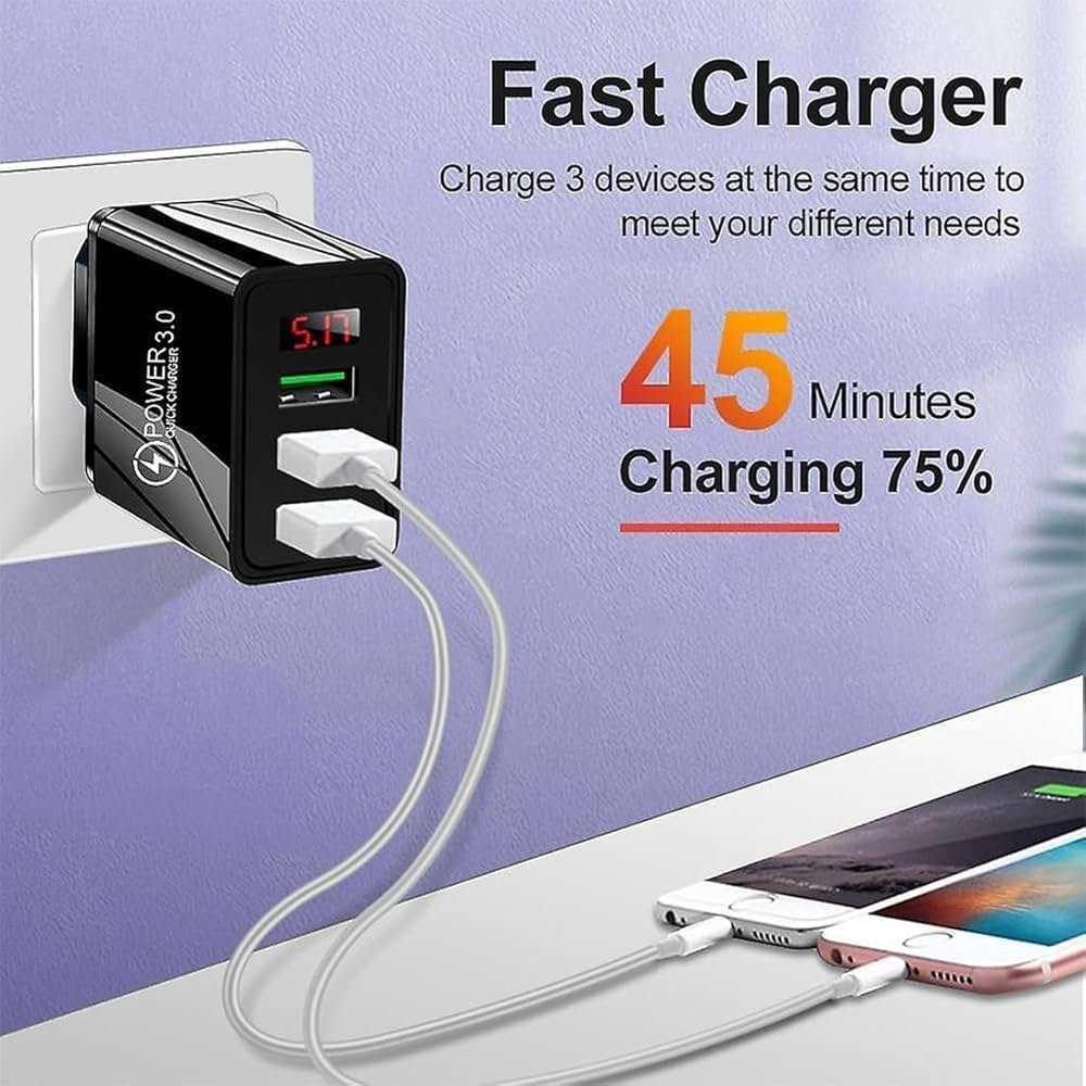 36W Fast Charger Travel Adapter with Led Charging Indicator,3 USB Multi Ports Mobile Wall Charger Universal Compatibility for iPhone,Samsung,Pixel Etc