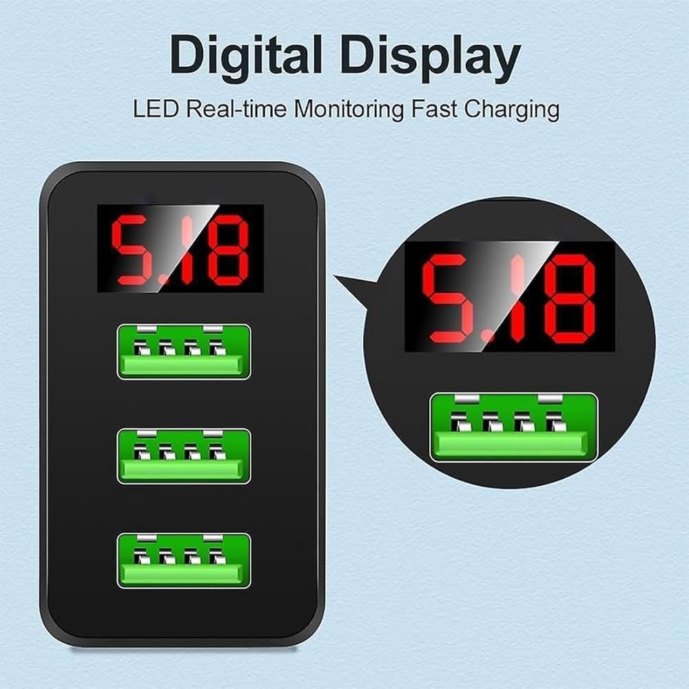 Digital Display for Real-Time Monitoring: Compact design with a digital display showing current output and voltage, allowing you to easily monitor the charging status of your devices.