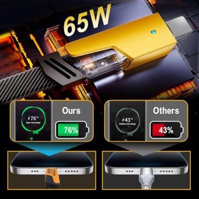 ● 65W Fast Charging & Data Transfer:- Supports up to 65W output for rapid charging – charge your phone up to 65% in just 30 minutes. Also enables fast data transfer with speeds of up to 1G in just 19 seconds.