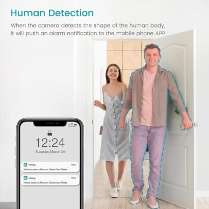 ● Smart Detection: home camera is designed for enhanced security with Alexa compatibility. It includes advanced human and sound detection features, alerting you to suspicious activity. This security camera system for home can capture and store important moments through photos and videos, making it a reliable wireless camera for home security