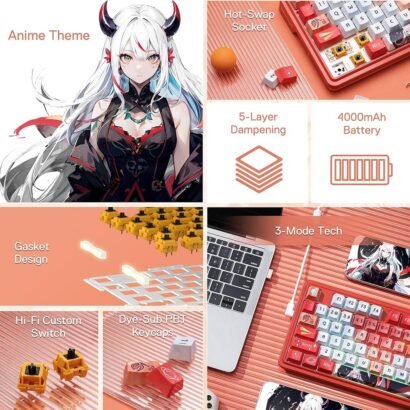 81 Keys Wireless Gasket RGB Gaming Keyboard, 3-Mode Anime Mechanical Keyboard w-Hot-Swap Socket, Dedicated Knob Control & 5-Layer Noise Dampening, Custom Hi-Fi Linear Switch
