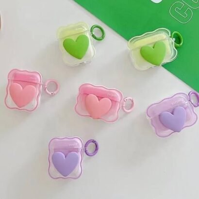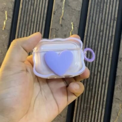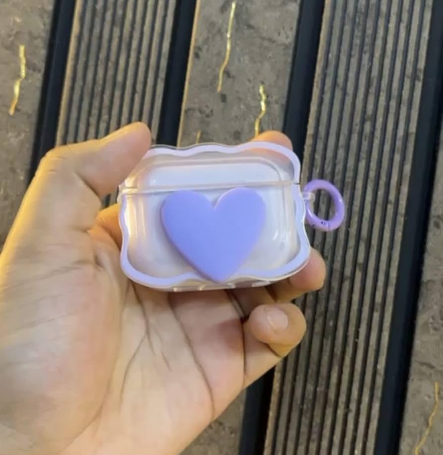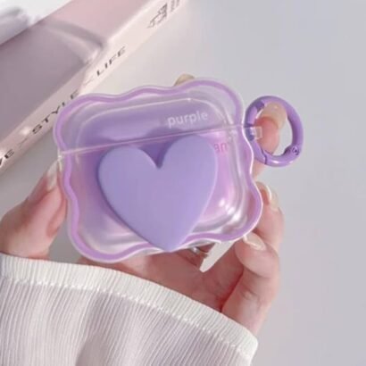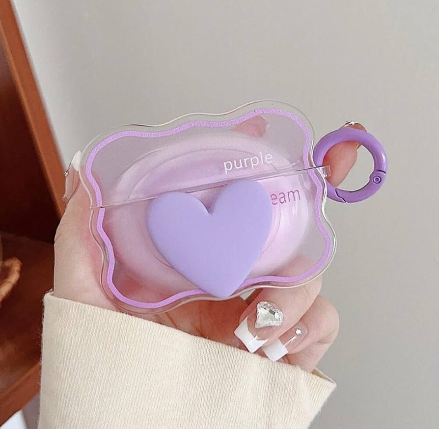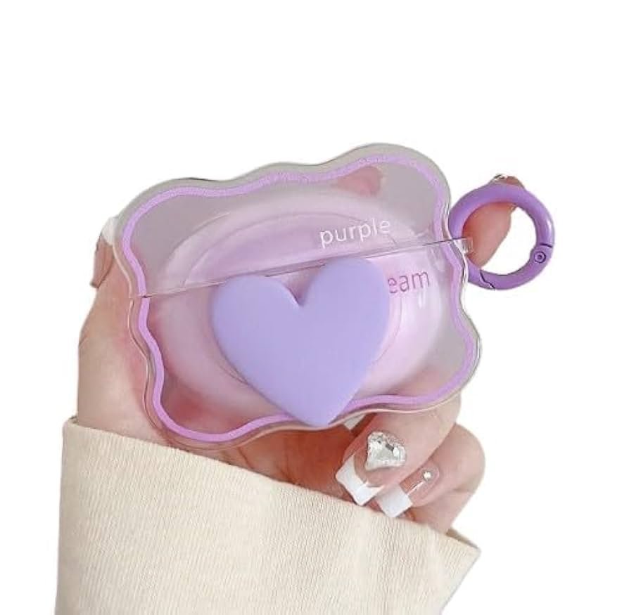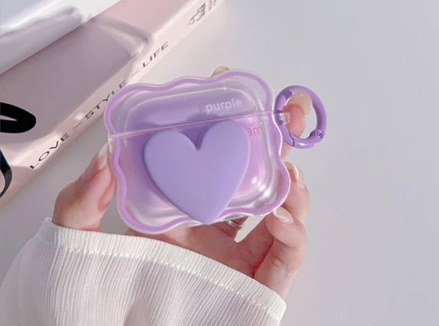 The cute heart purple design adds a feminine and stylish flair, perfect for gifting or personal use. The attached keychain lets you easily secure your AirPods to your bag, belt, or keys, making them portable and always within reach.
