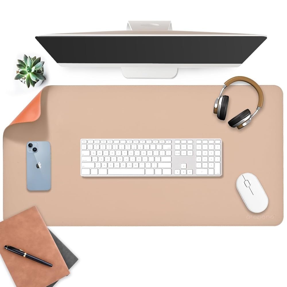 Crafted from premium vegan leather, this mat features a reversible design in Apricot and Orange, offering two lively color options to refresh your workspace whenever you want. The smooth surface enhances mouse tracking precision, while the non-slip base ensures stability during long working or gaming sessions.
