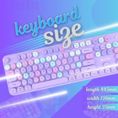 Aula AC306 Wireless Keyboard with Retro Keys and 1600 DPI Mouse Combo _ 2.4GHz Wireless Keyboard with Mouse Combo for Desktop-Laptop and Devices with USB Support (Mix Purple)