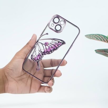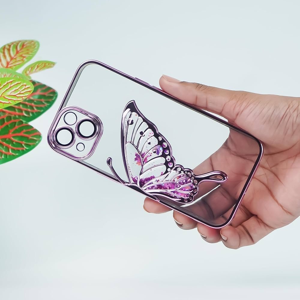 Back Cover Case for iPhone 15 Scratch Resistant Anti-Slip TPU Shockproof Protective Durable Glowing Butterfly Transparent Case(Pink)