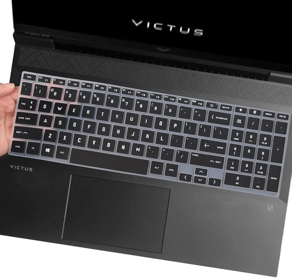 This black silicone keyboard protector is designed for HP Victus 15.6-inch laptops (15-FA & 15-FB Series). Made from premium waterproof silicone, it shields your keyboard from dust, dirt, and spills while maintaining a smooth, comfortable typing feel. Washable, reusable, and easy to apply or remove without residue.