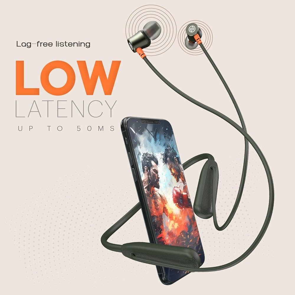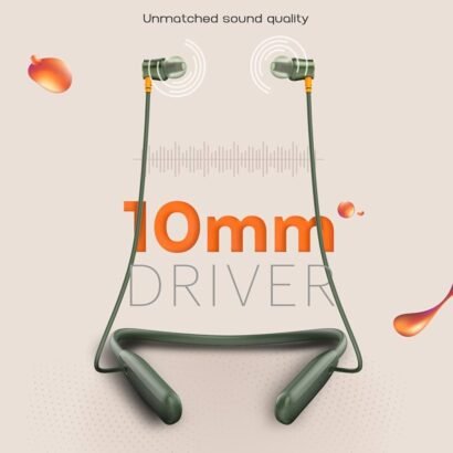 Experience high-quality audio and long-lasting performance with the Olive Green-Airwave Bluetooth In-Ear Neckband Headphones. Designed for music lovers and professionals on the go, these headphones deliver up to 50 hours of continuous playtime, ensuring your favorite playlists never have to pause.
