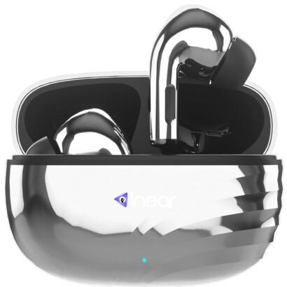 Silver Bluetooth TWS Earbuds with up to 60H playtime, dual pairing, fast Type-C charging, touch controls, deep bass, IPX4 sweat resistance, ANC, and voice assistant support. Comfortable, durable, and true wireless.