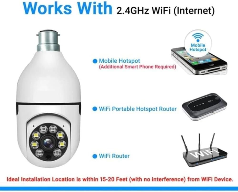 Bulb Shape Camera Indoor HD 1080P (2MP) CCTV WiFi Camera _ Motion Sensor LED Light _ Two- Way Audio _ Perfect for Home, Shop, Godown & Office Monitoring