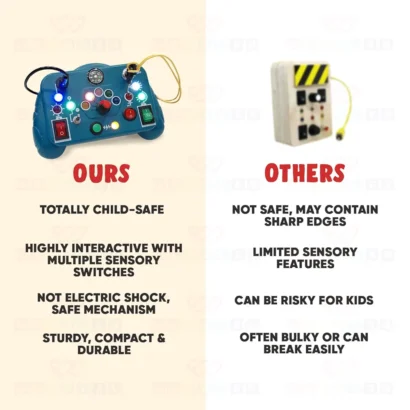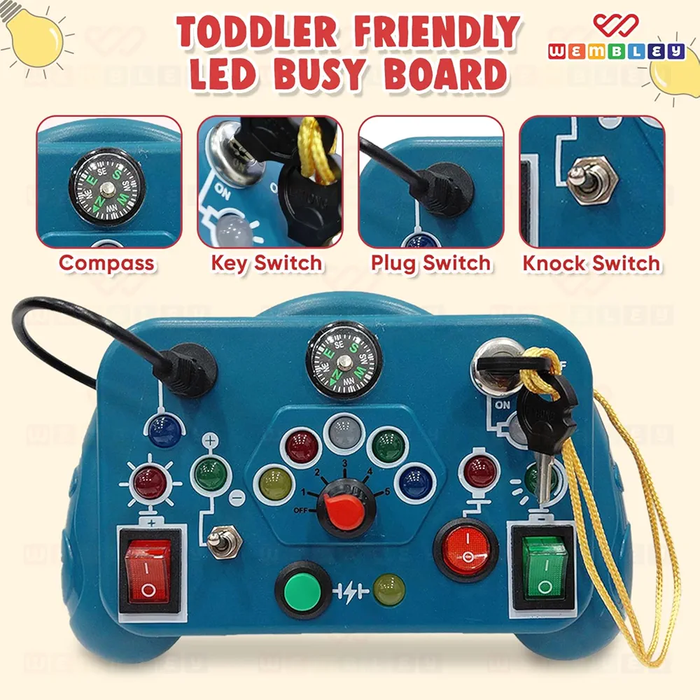 This 6-in-1 busy board allows kids to press buttons, turn keys, insert wires, and push levers, exploring cause and effect through lights, sounds, and motion. Battery-free and safe for everyday use, it encourages creativity, curiosity, and independent play. Lightweight and portable, the Busy Board Switch Light Game is perfect for home, school, or travel, providing an engaging and educational experience for children.