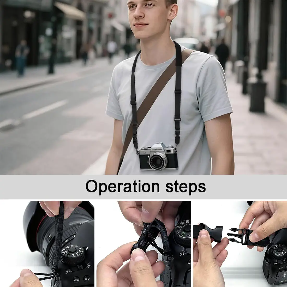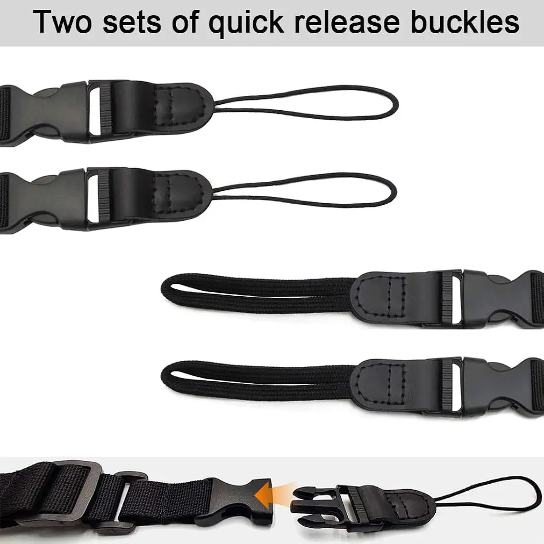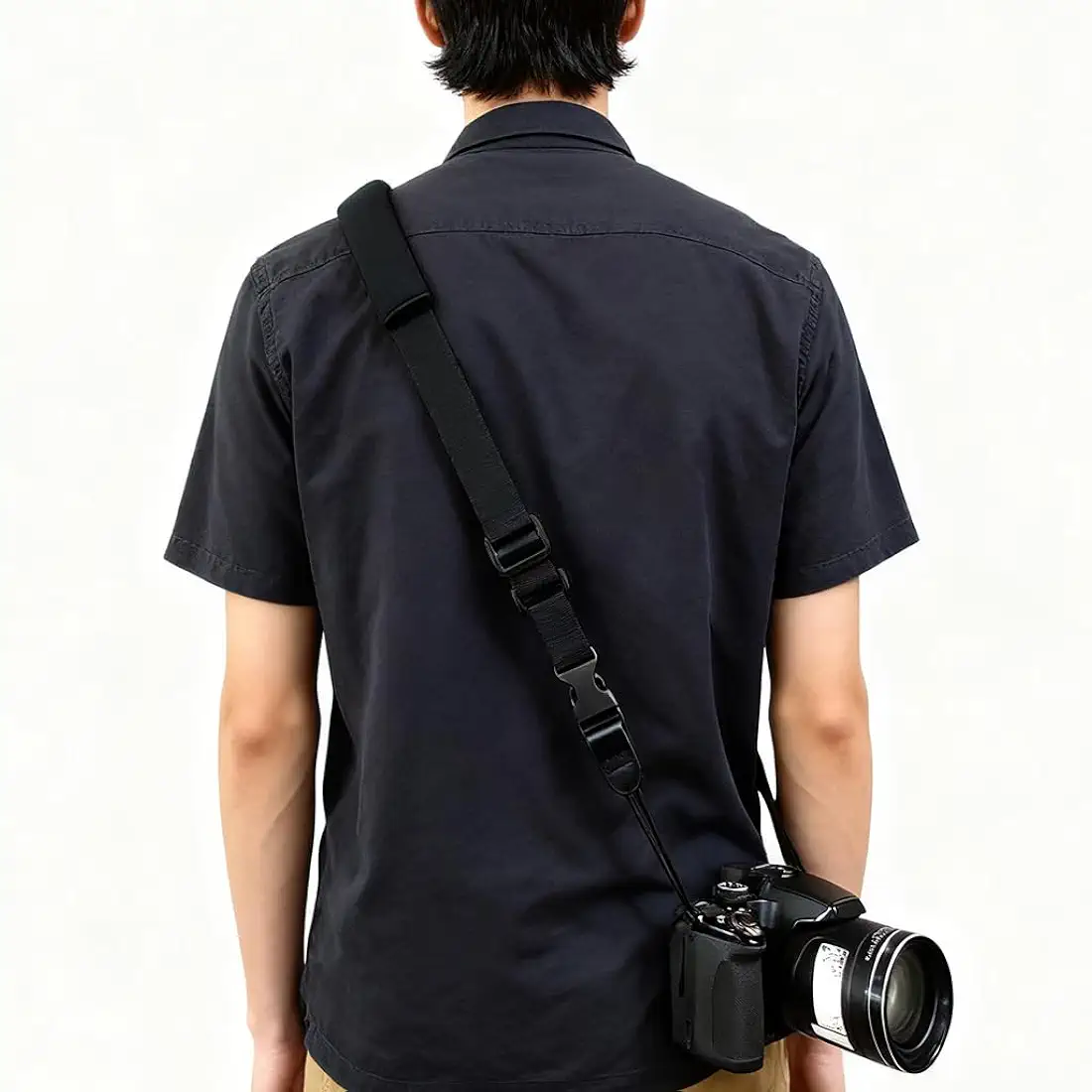 The adjustable design allows photographers of all sizes to customize the length for a perfect fit. Wear it crossbody or over the shoulder to maintain balance and security while keeping your camera easily accessible. Quick-release connectors make attaching and detaching the camera effortless, making it perfect for travel, wildlife, event photography, or any prolonged shooting sessions.