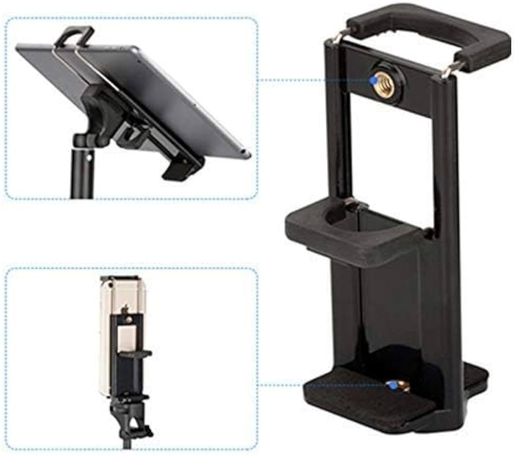 ● FITS ANY SELFIE STICK/TRIPOD MOUNT:This clip holder attaches directly to the selfie stick/tripod via a 1/4-20 standard screw attachment (where you normally attach a camera to a tripod). You can now make better YouTube videos and Selfie pictures with your cell phone/tablet.