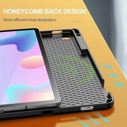 The built-in S Pen holder keeps your stylus safe and always within reach. The Auto Sleep/Wake feature smartly saves power by automatically turning your tablet on or off during use. Its tactile texture and strong grip make it ideal for long hours of reading, browsing, or watching videos. The raised camera cutout and soft frame provide extra protection against daily impacts while maintaining a sleek profile.