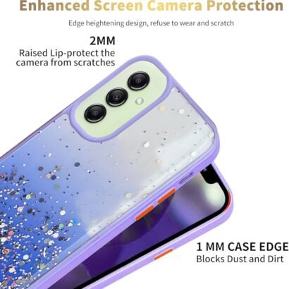 Protect your Samsung Galaxy A14 5G in style with this Purple Glitter Shockproof TPU Case, combining fashion, functionality, and durability.