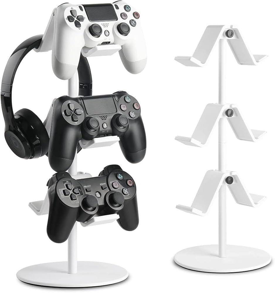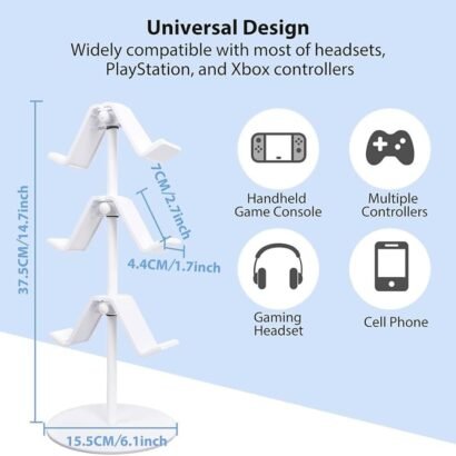 Controller Stand 3 Tier,Headphone Holder, Multi Adjustable Game Controller Headset Hanger for All Universal Gaming PC Accessories, Compatible for Xbox PS4 PS5 Nintendo Switch (White)