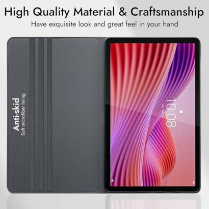 The folio-style flip cover offers hands-free convenience, allowing you to position your tablet at multiple viewing angles — perfect for reading, watching videos, typing, or browsing. The soft inner lining safeguards your screen from scratches and dust, while the sturdy exterior protects against daily wear, drops, and bumps.