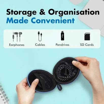 Durable travel pouch for earphones and small accessories, featuring anti-scratch mesh pocket, shockproof lining, and multi-purpose storage.