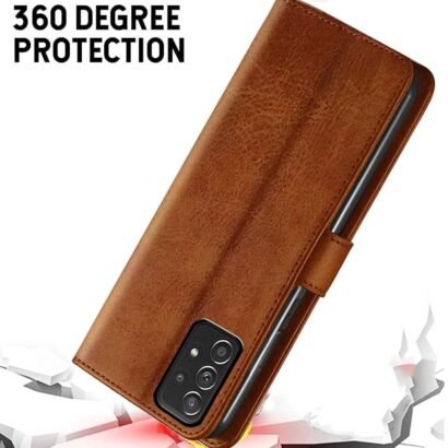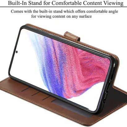 Flip Back Cover Case for Samsung Galaxy A13 4G _ Genuine Leather Finish _ Designer Button _ Inbuilt Pockets & Stand _ Flip Cover Back Case for Samsung Galaxy A13 4G (Brown)