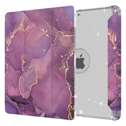 Flip Case Cover for iPad 10.2 Inch – Purple Marble. Faux leather and silicone, full protection, precise cutouts, classic and durable design.