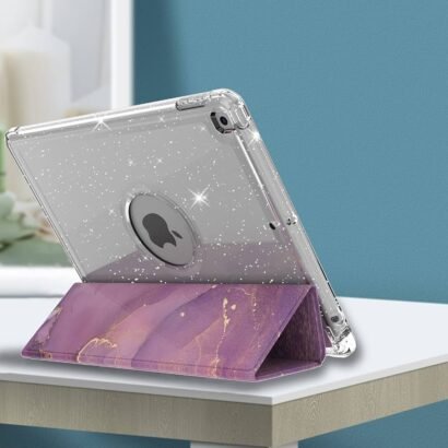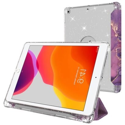 Protect your iPad 10.2-inch with the Flip Case Cover – Purple Marble, combining elegance and durability. Made with faux leather and soft silicone, this case safeguards your tablet while maintaining a stylish look.