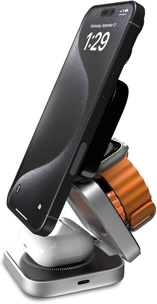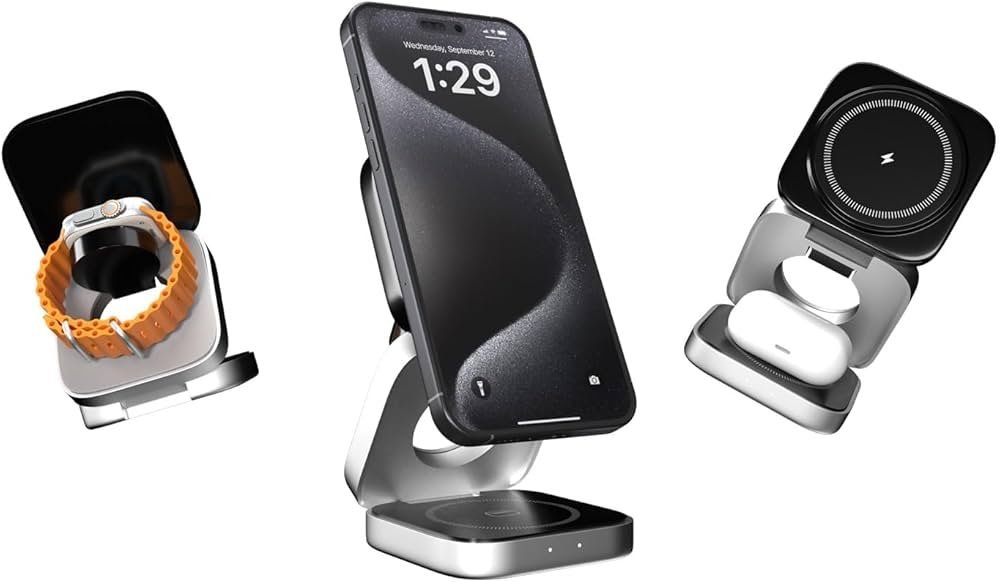 Foldable Wireless Charger Hub for Magsafe_ Magnetic 3-in-1 Charging Station Compatible for Apple iPhone Devices 16-15-14-13-12 Pro Max Plus, Apple Watch, and Airpods (Wx008), Multi
