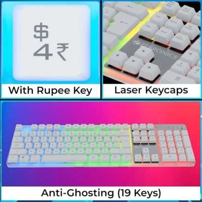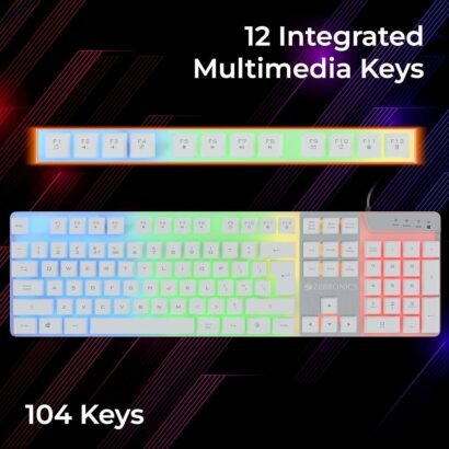 Upgrade your gaming setup with this wired gaming keyboard featuring 104 laser-etched keys and multi-color LED backlighting for a stunning visual experience. It includes 12 integrated multimedia keys for quick access, a 2-step adjustable stand for ergonomic comfort, and anti-ghosting on 19 keys for accurate keypresses during intense gaming sessions. The 1.8m braided cable with gold-plated USB ensures durability and stable connectivity. Compatible with laptops and desktop PCs, this keyboard is designed for both style and performance.