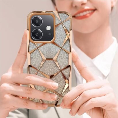 The Glitter Geometric Case for Oppo A3 / A3x 5G – Gold merges fashion and functionality seamlessly. Constructed from high-quality TPU, it provides all-around protection against daily bumps and scratches while maintaining a slim profile. The 3D geometric diamond design paired with sparkling glitter flakes gives your phone a luxurious, eye-catching finish. Precise cutouts ensure effortless access to ports, buttons, and camera, making it a practical and stylish accessory for your Oppo A3 or A3x 5G.