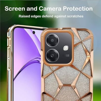 Give your Oppo smartphone a touch of luxury with the Glitter Geometric Case – Gold. Featuring sparkling 3D geometric patterns, this case ensures both style and complete protection for your device.