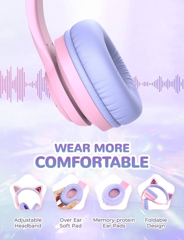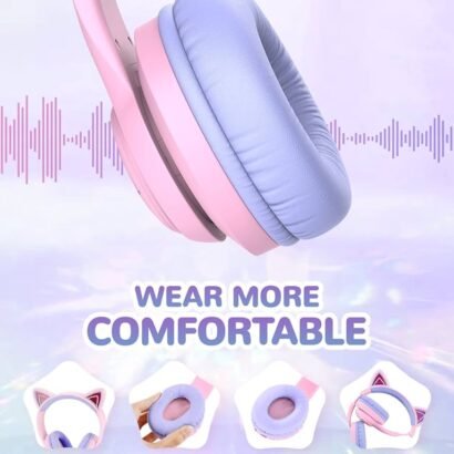 The over-ear design with soft cushioned ear pads ensures maximum comfort for long listening sessions, whether your child is watching videos, attending online classes, or playing games. The fun cat ear design adds a playful touch that kids love, making these headphones the perfect gift for birthdays, holidays, or special occasions.