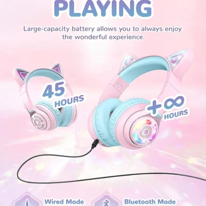 The over-ear cushioned design ensures maximum comfort for long listening sessions, whether your child is studying online, watching videos, or playing games. The cute cat ear design adds a playful and trendy touch, making these headphones a perfect gift for birthdays or special occasions.