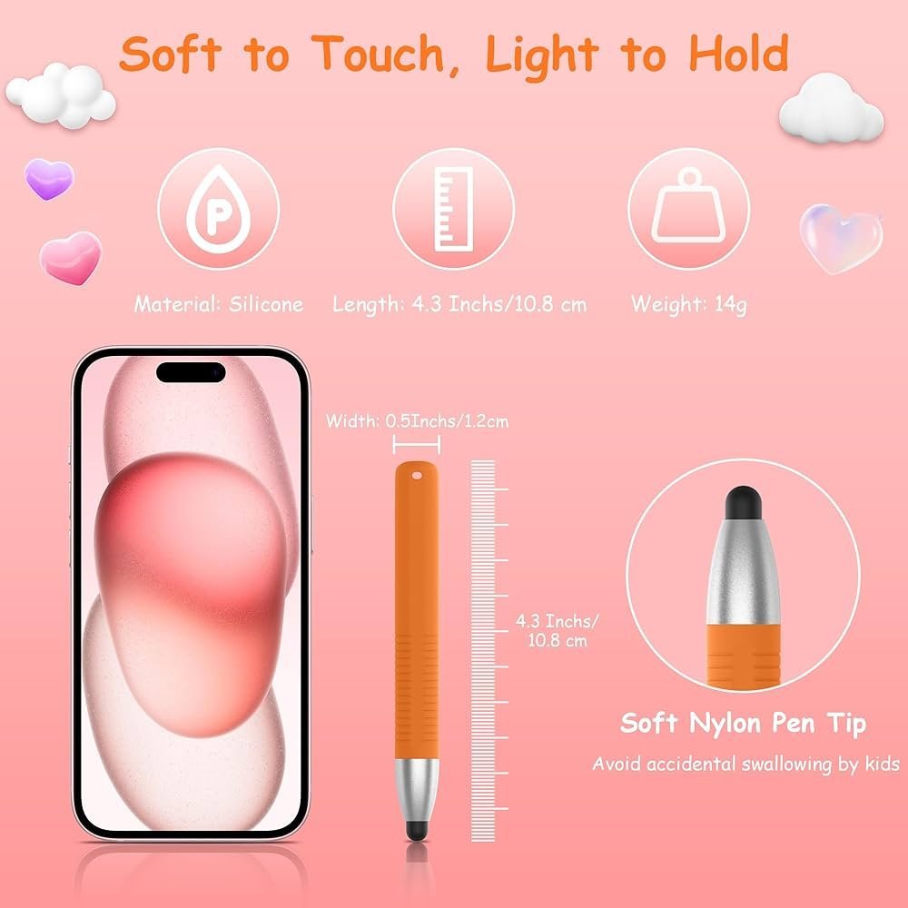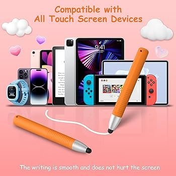 The Kid Stylus Pens for Touch Screen are designed to make learning and creative play both fun and safe. With strong compatibility, these stylus pens work seamlessly with iPhone, iPad, Samsung, Kindle, most touch screen smartphones, and all Amazon Fire Kids and Kids Pro Tablets.