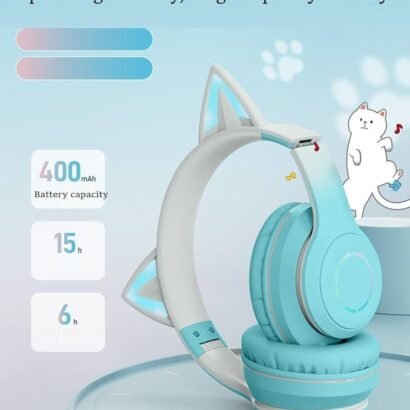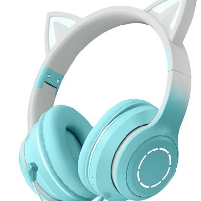 Make listening fun with Kids Cat Ear Bluetooth Headphones, featuring adorable cat ears with LED lights that can be turned on or off as desired. These over-ear wireless headphones provide HD sound with a 105dB volume limit for safe listening. Foldable and adjustable, they are perfect for PC, tablets, school, or travel, combining comfort, style, and functionality. Equipped with a built-in mic and 3.5mm jack compatibility, they allow clear calls and versatile use. A playful and practical gift for kids of all ages.