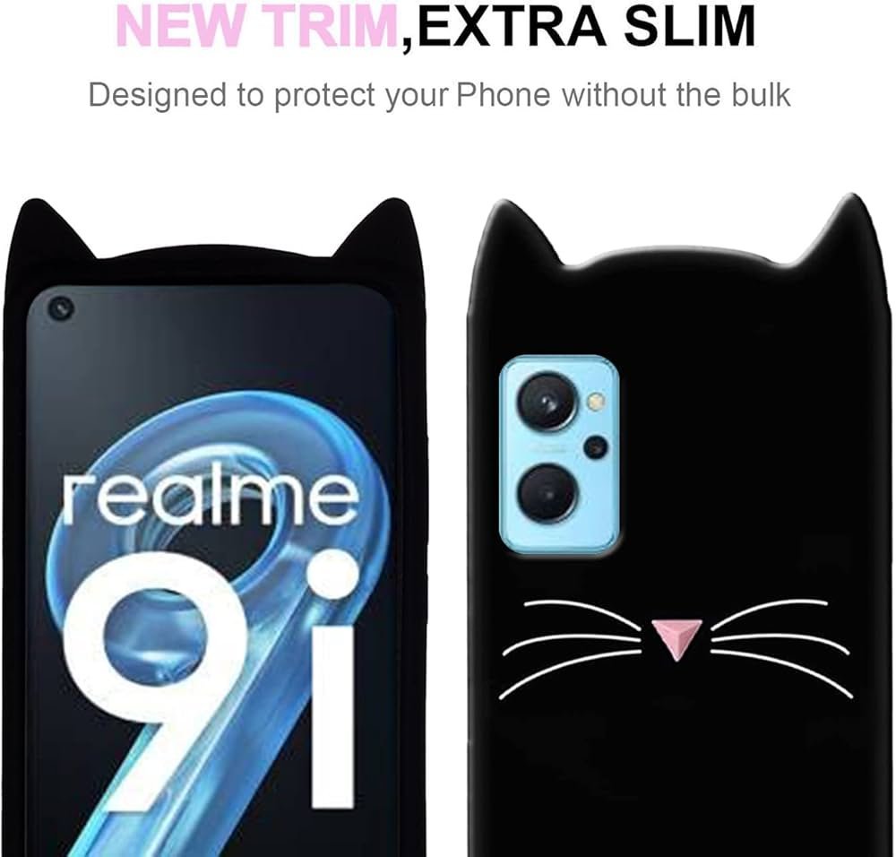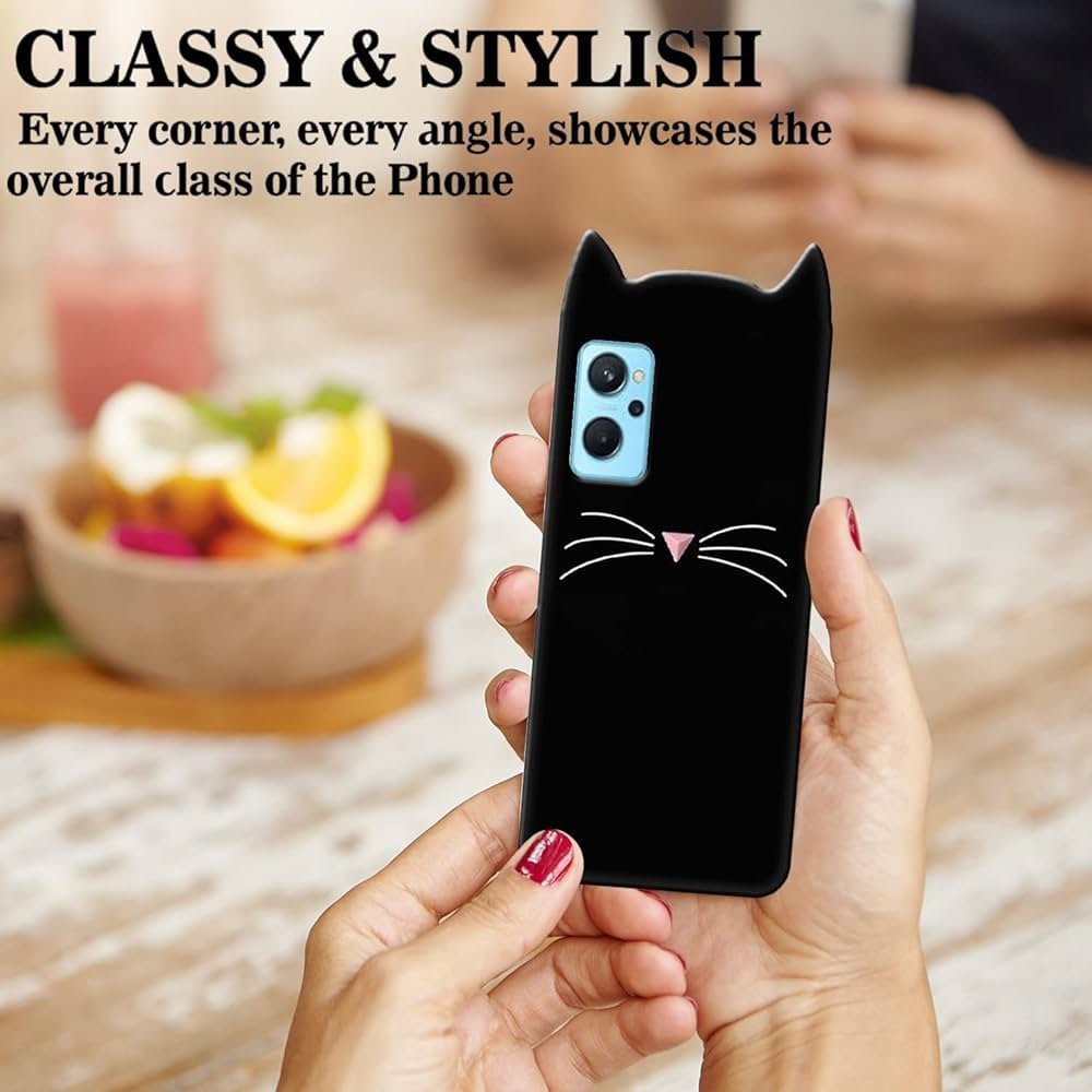 Colour Cute Girlish Soft Silicone Cat Ear Meow Back Cover Case for OPPO CPH2375 / OPPO A76- Black