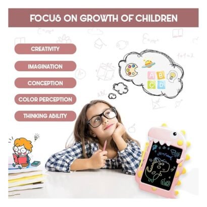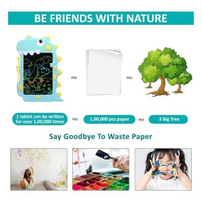 Equipped with an LCD screen, this writing tablet offers eye protection with no radiation or glare, ensuring comfortable and safe use for long periods. Included components such as the battery and dinosaur-themed tab make it more appealing to kids, turning study and playtime into a delightful experience.