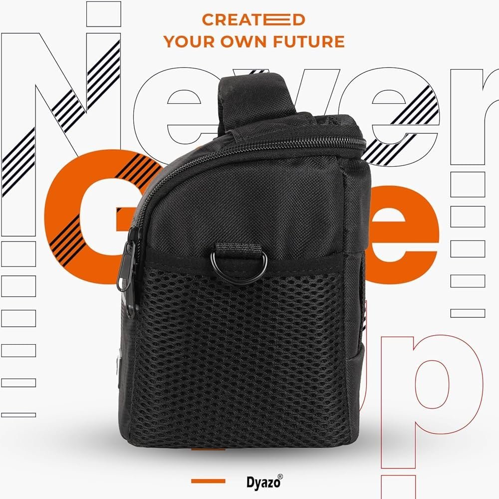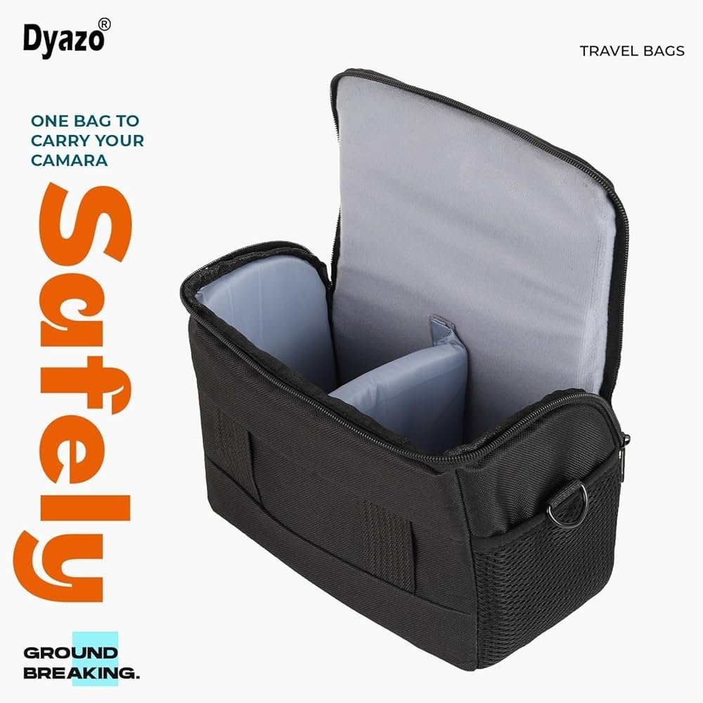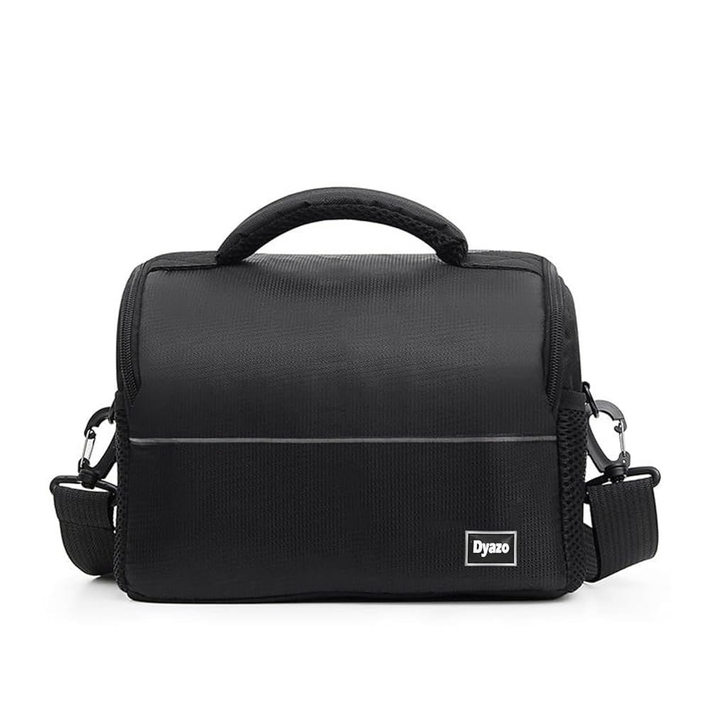 Keep your camera safe and organized with this durable, water-resistant single shoulder camera bag. Made from premium nylon, it fits most DSLR and mirrorless cameras along with one spare lens, filters, and SD cards. The bag features a padded interior with a divider to keep your gear neatly arranged, a sturdy zipper closure, and an adjustable shoulder strap for comfortable carrying. Its compact design includes two side pockets for chargers and small accessories, making it perfect for photographers on the go.