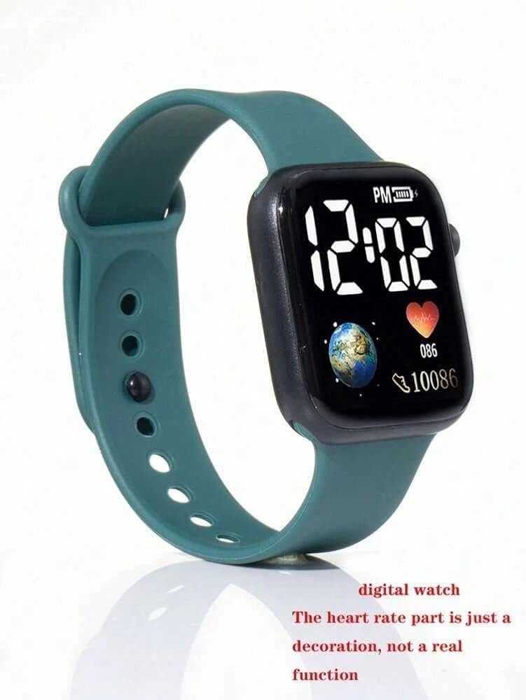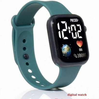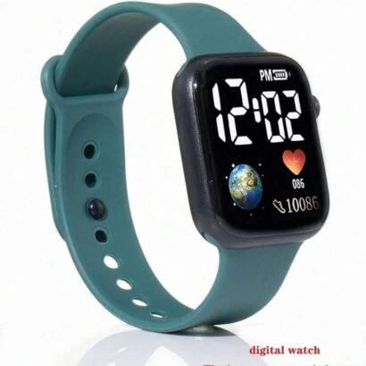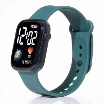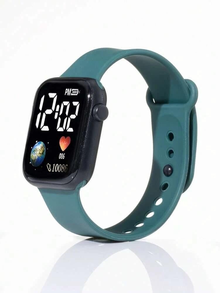The Luminous LED Display Fashionable Watch combines sporty aesthetics with advanced functionality, making it an ideal accessory for men and boys. It features a 36mm square black dial paired with a premium green polyurethane (PU) strap, offering both durability and a striking look.